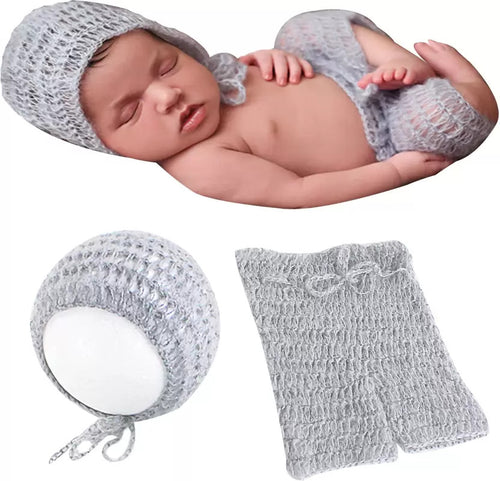 Babymoon Set of 2 | Bow Cap & Pant | Newborn Outfits| Baby Photography Props Costume | Grey