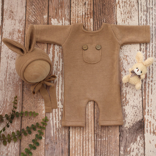 Babymoon Set of 3 | Rabbit Theme Cap, Bodysuit, Doll | Baby Photography Props | Brown