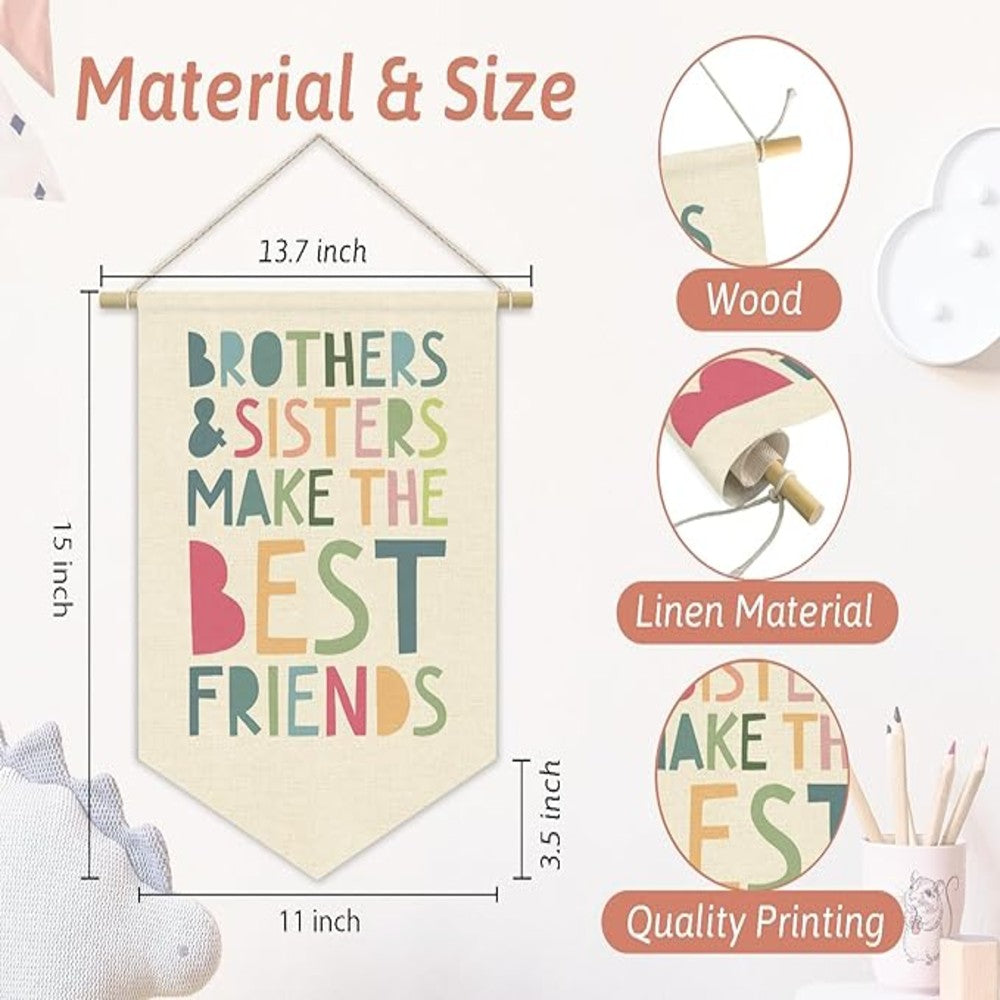 • Load image into Gallery viewer, Babymoon Kids Nursery Décor Canvas Banner | Playroom, Bedroom, Wall Art Decoration | Wall Hanging | Flag Banner | Baby Photoshoot Props | Brother n Sister